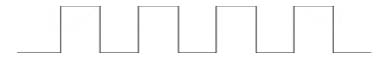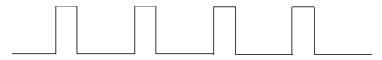 但這種脈沖寬度不是可以無限制的變窄的,脈沖寬度的變化范圍,即調節(jié)范圍僅是10%—90%。這一特點決定了這種PWM芯片,并不適用于一個從0電壓起調的所謂連續(xù)可調的電源。例如一臺500V5A的開關電源,當它輸出達500V5A時,控制脈沖最寬,形如: